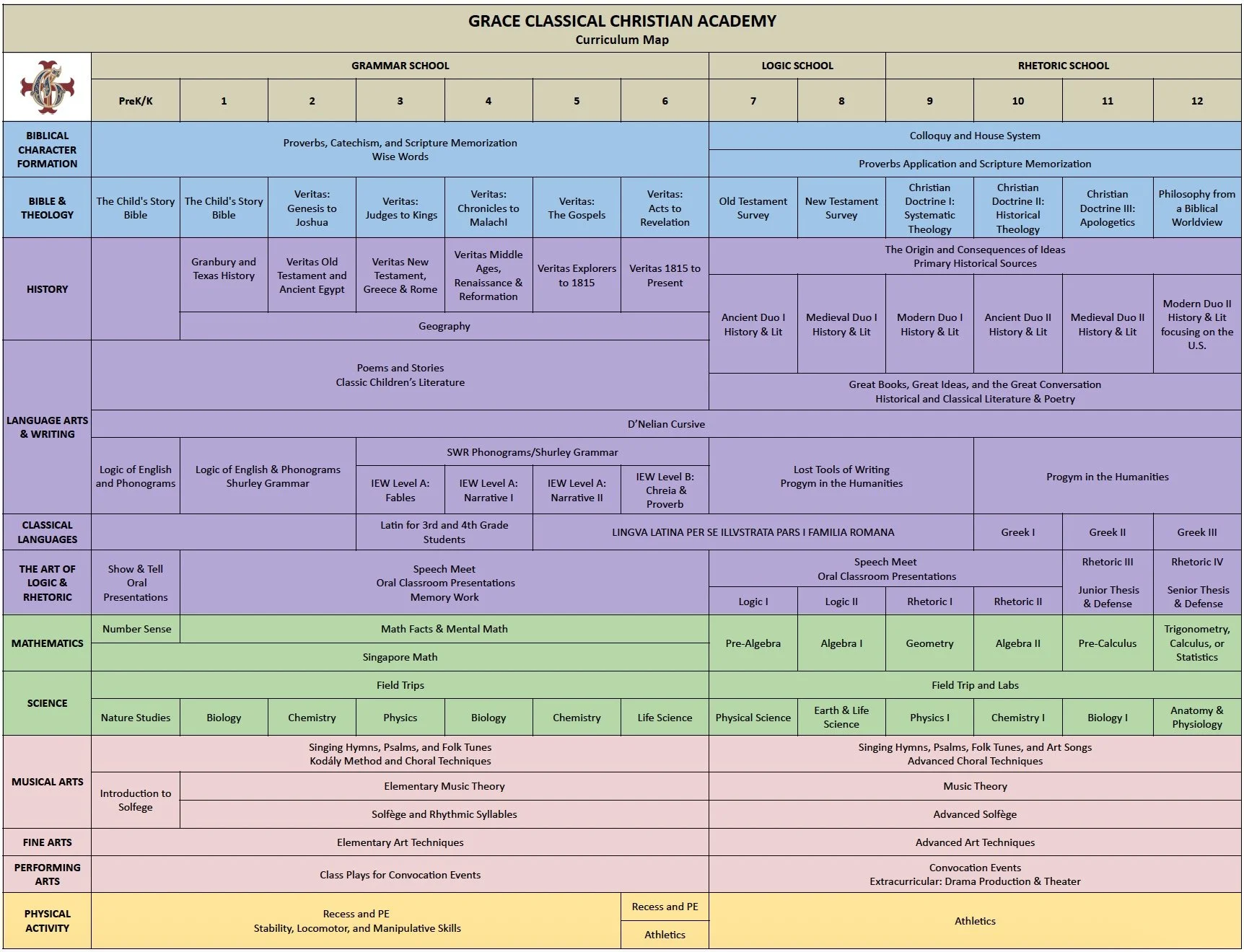 The GCCA Curriculum Map is a picture of the journey our students take as they, along with their parents, partner with us in our mission. Please note, this document serves as a general outline of content that is covered and is subject to change.