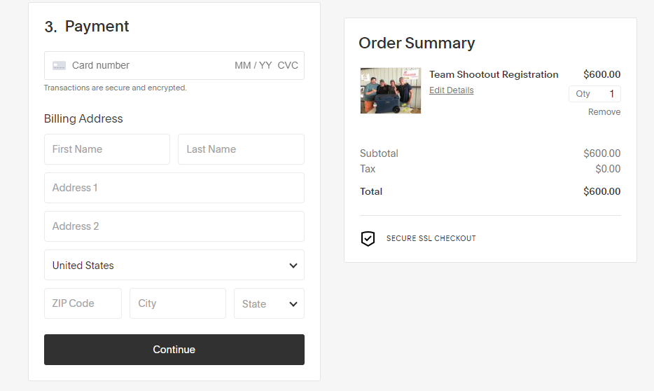 Fill out payment info and checkout. You should receive a confirmation email once your transaction is complete.