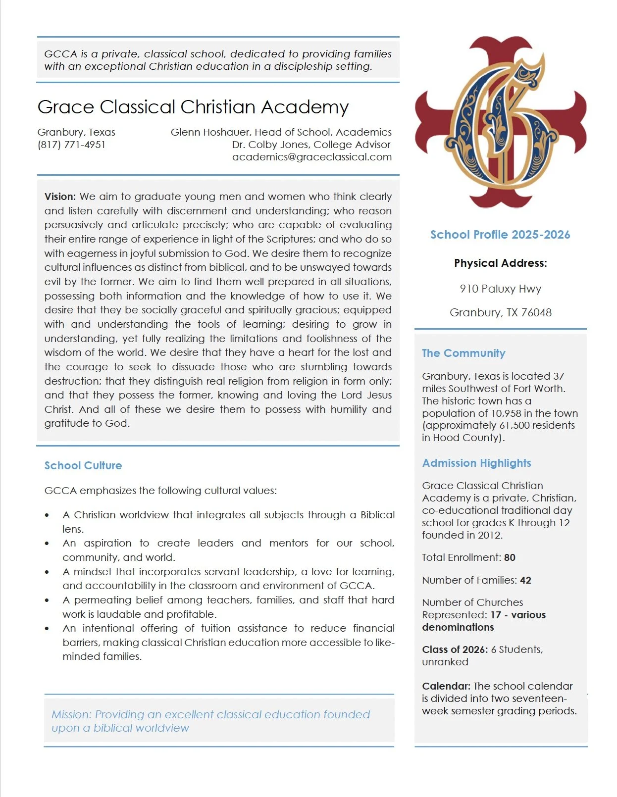 GRACE CLASSICAL CHRISTIAN ACADEMY